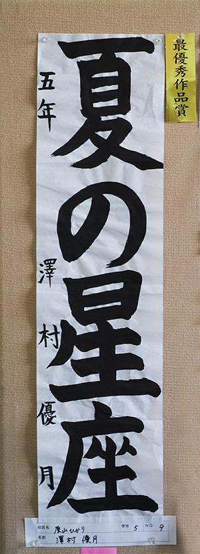最優秀賞や特別賞、優秀賞、努力賞に5年生の澤村優月(さわむらゆづき)さん、古家愛唯(ふるやめい)さん、高橋花鼓(たかはしかのこ)さん、坂田陽彩(さかたあかり)さんが、計8点入賞(複数入賞あり)されました。受賞、おめでとうございます。