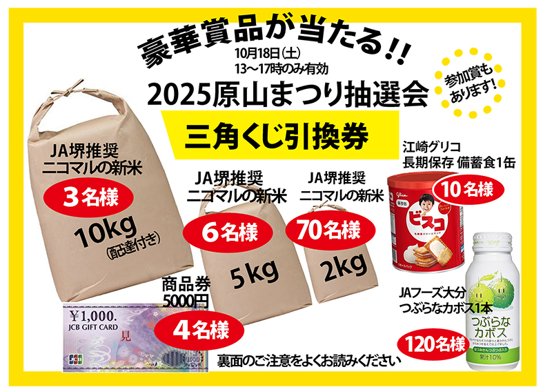 豪華賞品が当たる‼ 2025原山まつり抽選会