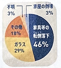 阪神淡路大震災時、家の中でケガをした原因の46%が家具の転倒落下です。