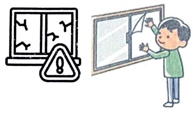 カーテンを閉めておくことでガラスの飛散が軽減されます