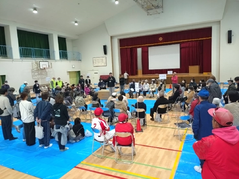 今年11月23日の校区防災訓練は、午前8時に震度6弱の大地震が堺市内で発生したと想定し、自主防災会の避難所開設チームが各学校の校門や体育館の鍵を開け、自家発電機を稼働させ照明器具を点灯させます。また、体育館にブルーシートを敷くなど、避難者の受け入れ準備(避難所開設)を地震発生から1時間以内に整えます。