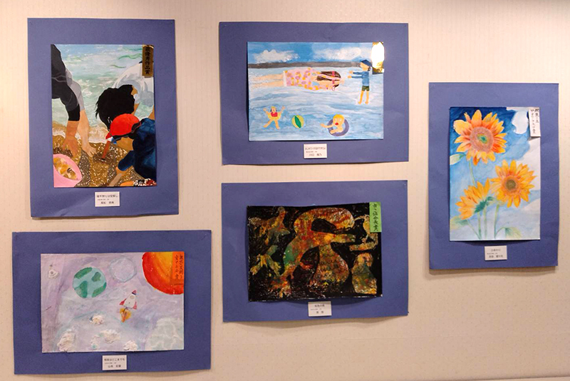 この作品展示は、夏休み作品展に出品された絵画・習字の審査をしていただいた泉北の美術を育てる会の先生方の計らいにより、今回初めて成就したものです。