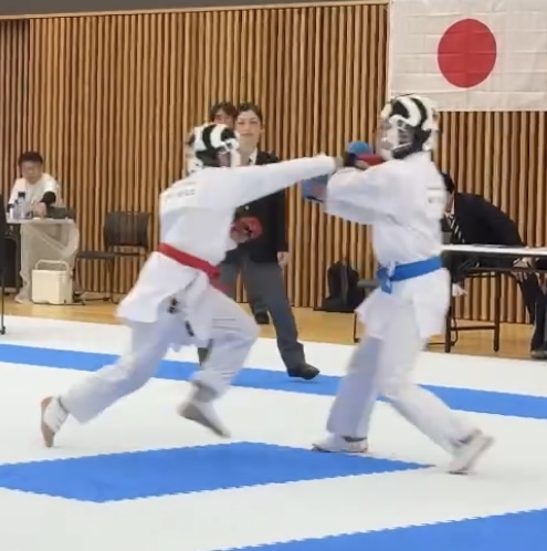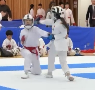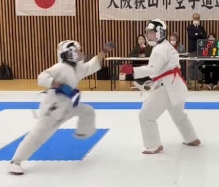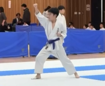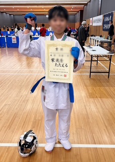 空手を始めて1年目の快挙でした。初級とは言え、大阪府下では強豪と言われる他道場からの選手もエントリーできる大会なので、勝つのは非常に困難でしたが、素晴らしい試合運びで勝ち切ってくれました。