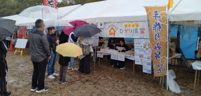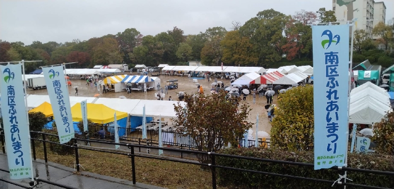 雨の中、西原公園運動場で開催された第26回 南区ふれあいまつり。