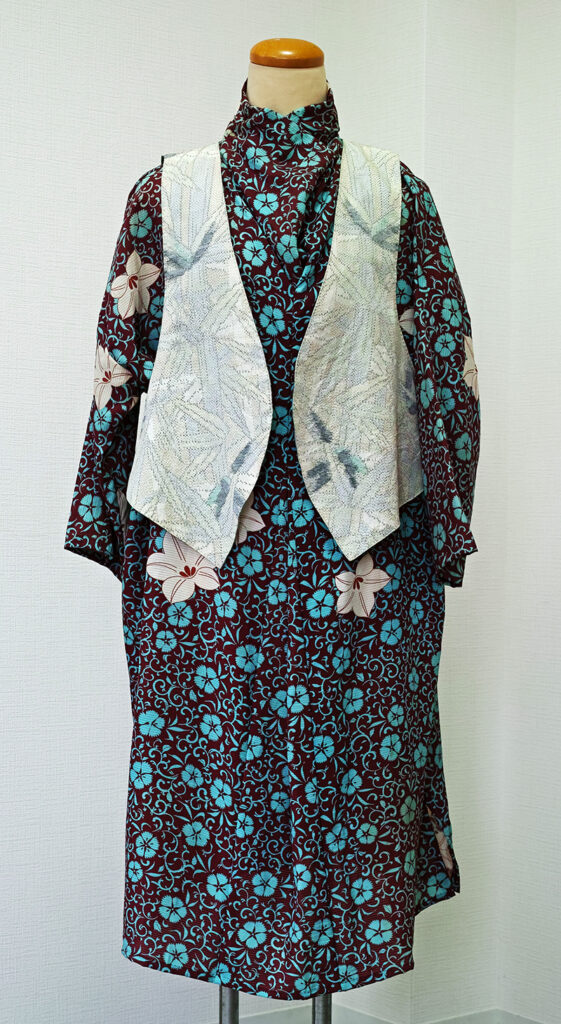 着物の布地でベスト