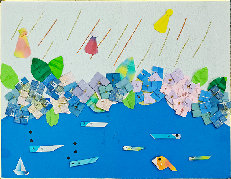 利用者の方々と職員でお花紙を利用して紫陽花を製作しました