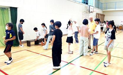 6月18日には、ひかり小学校の5年生49名と地域の高齢者14名との交流会が開催されました。体育館での体力測定では「片足立ち」「握力」「前屈」の種目を競い合い、教室に移動してからは福祉について考える授業に参加し有意義な時間を共有できました。