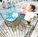 ふれあいあそびや、絵本の読み聞かせの後、原山台幼稚園の「移動動物園」に行きました。かわいい動物たちを見たり、エサをあげて楽しみました