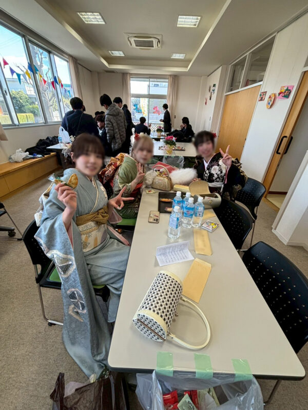 地域会館は、晴れ着の若人たちで熱気満々。和気あいあい。以前のようにアルコールを飲んで来ている人は一人もいません。身体つきこそ大柄ではありますが、おとなしく優しい子たちばかり。